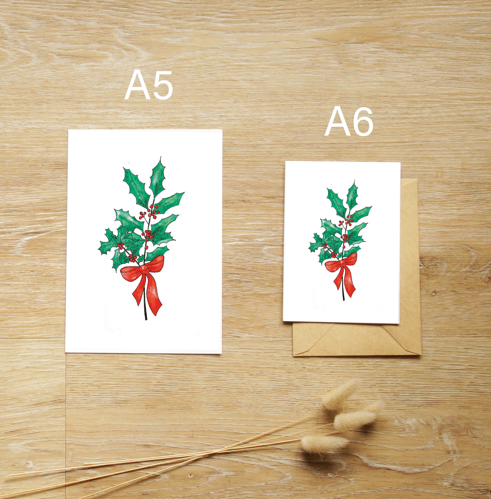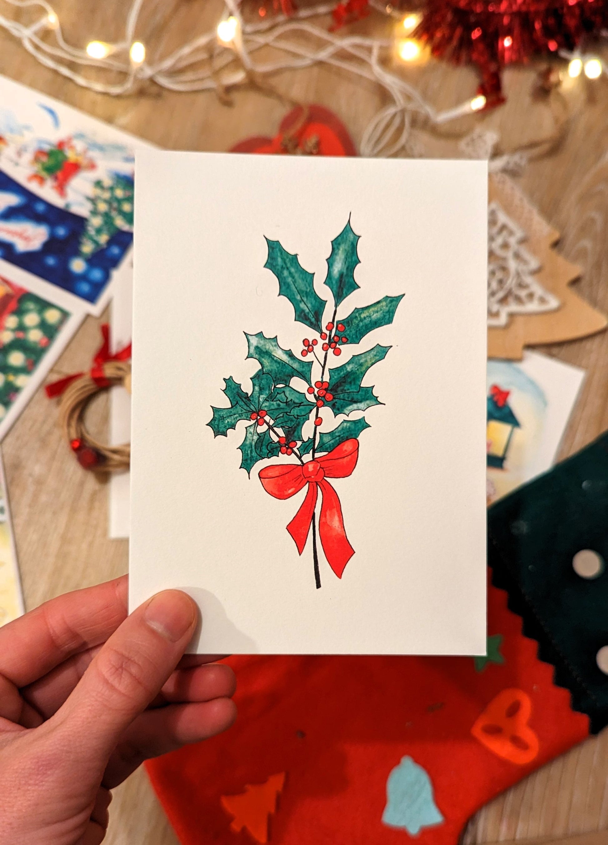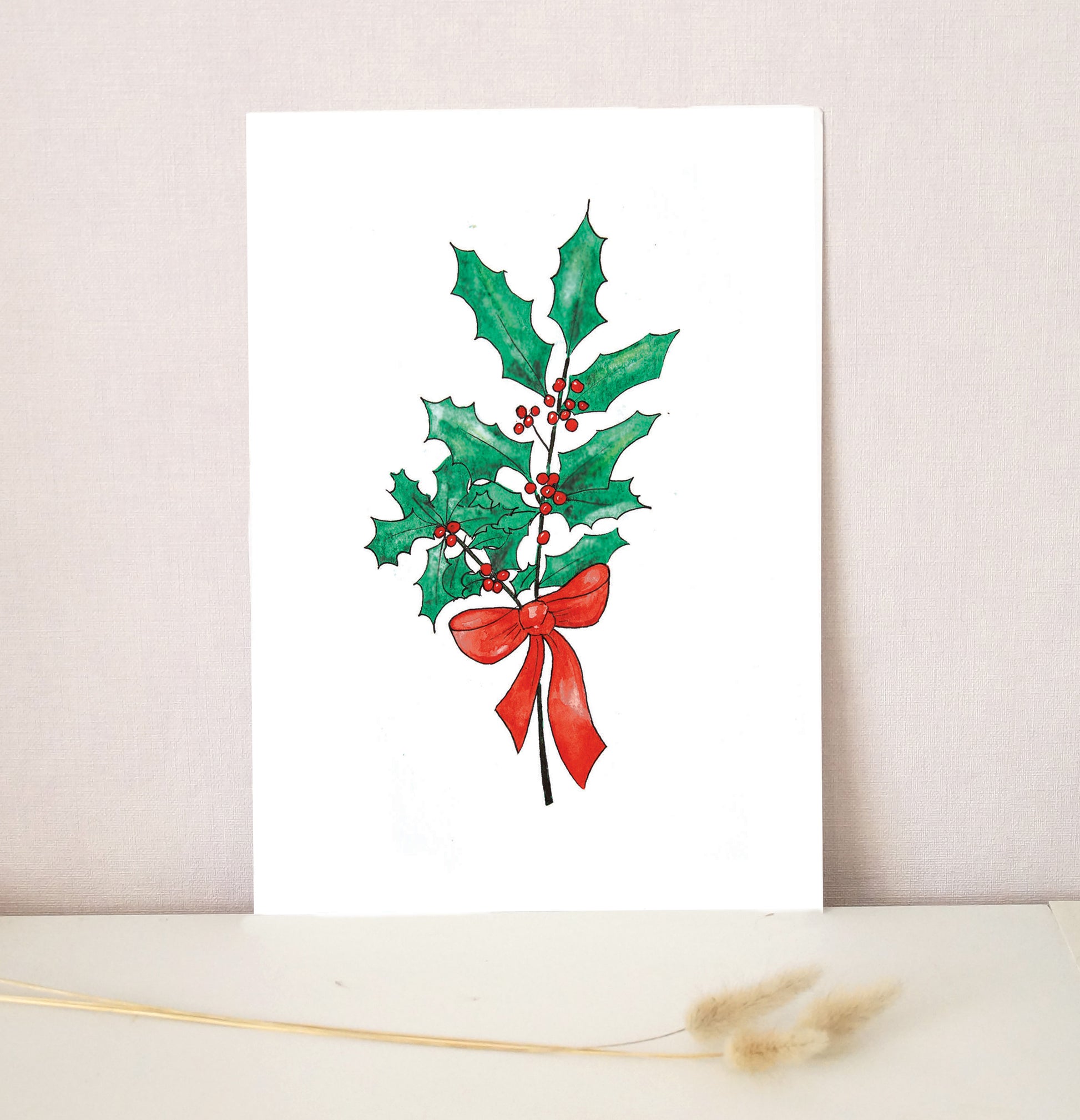 Reproduction de mon aquarelle originale "Jolie branche de houx".
