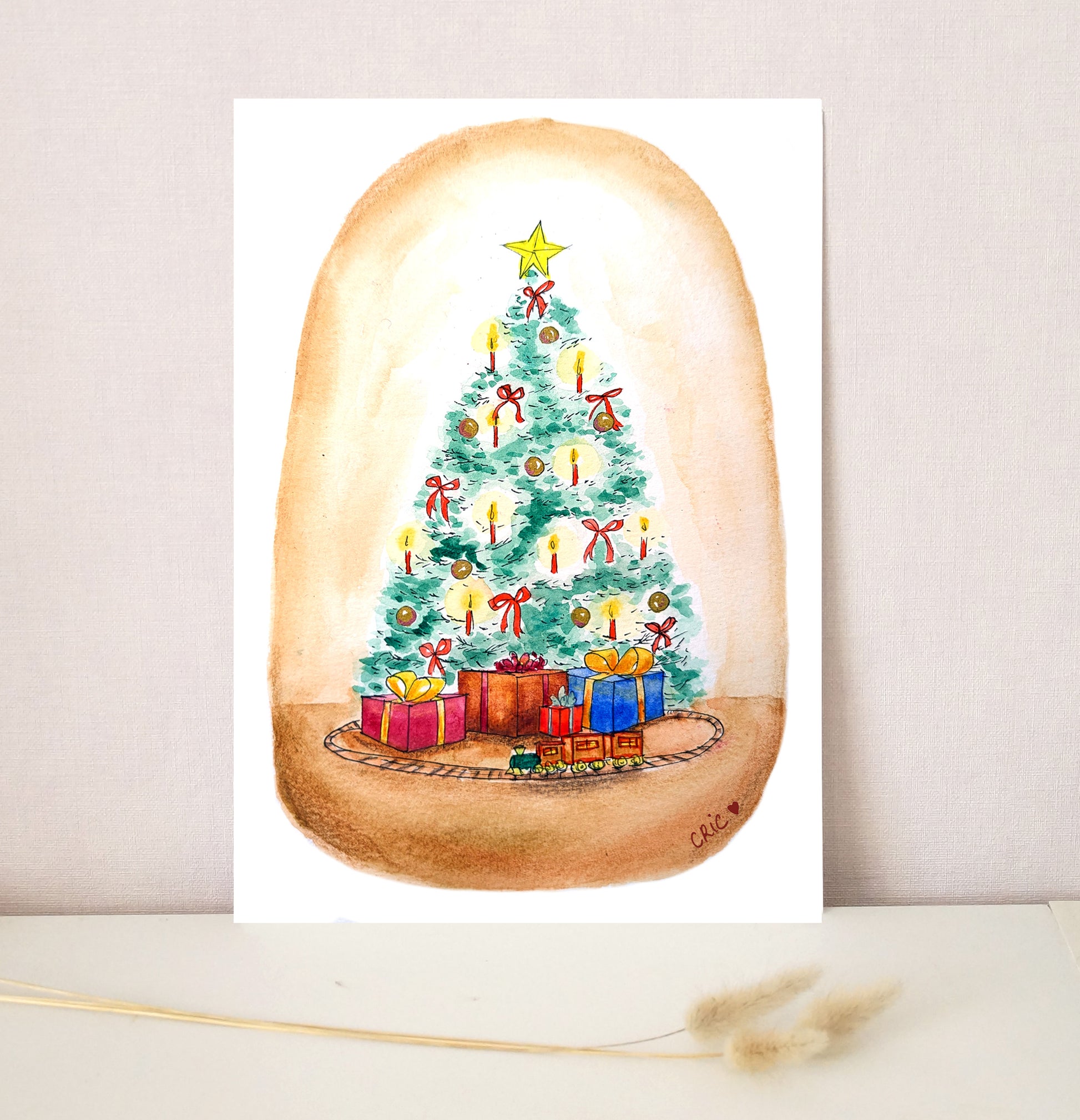 Reproduction de mon aquarelle originale "Sapin de Noël".