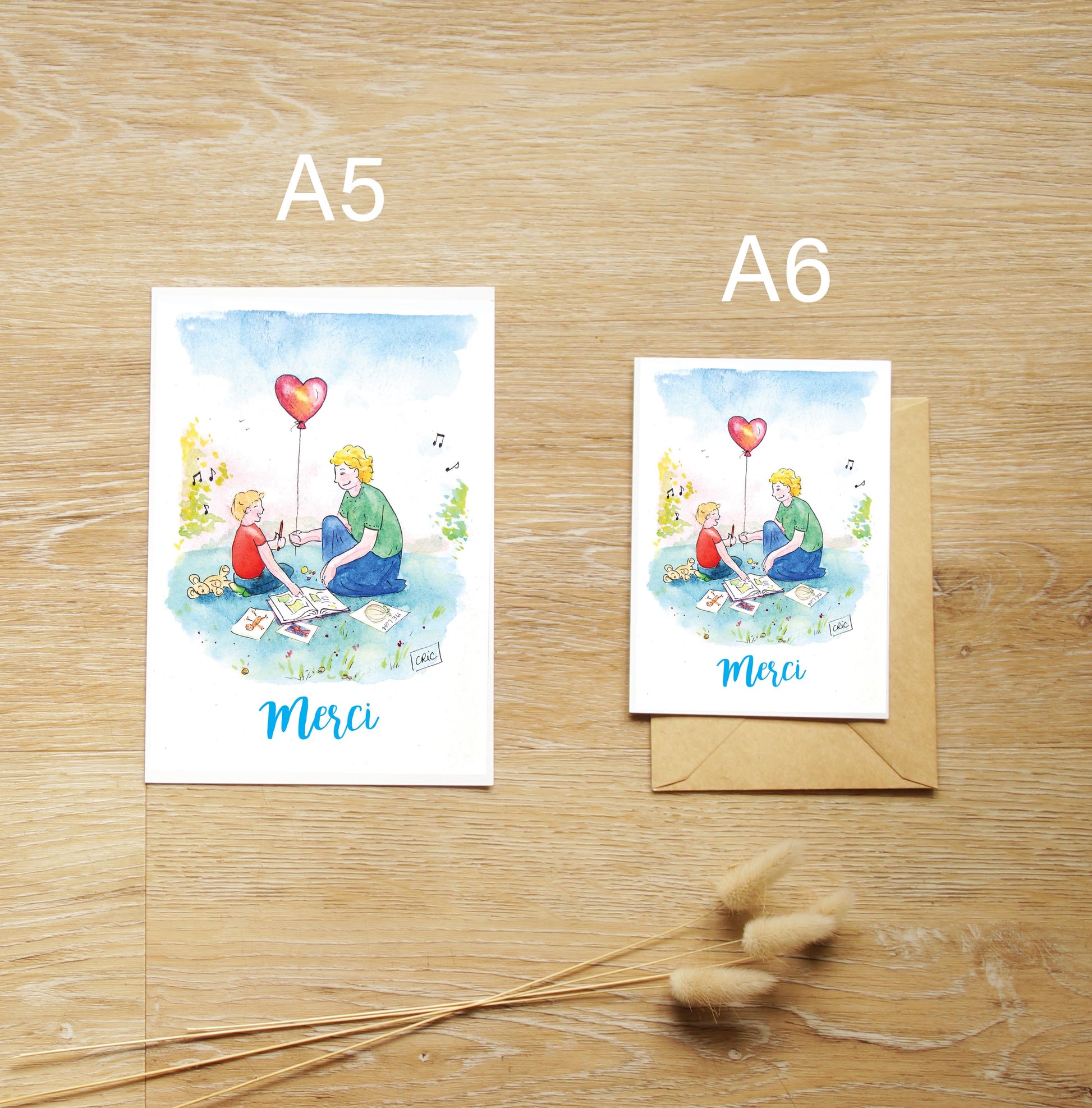 - format carte postale A6 (avec enveloppe kraft en papier recyclé)