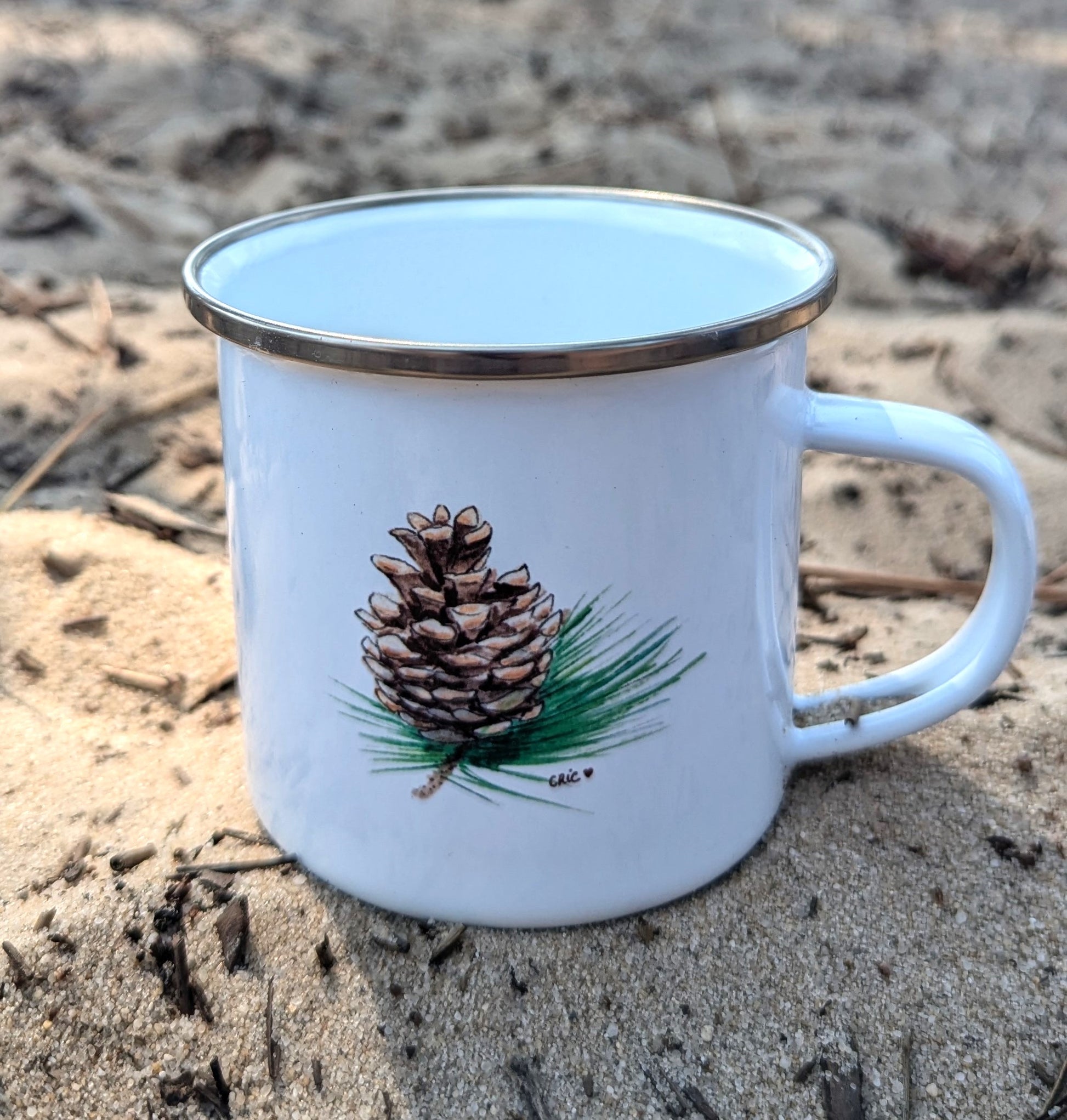 Reproduction de mes aquarelles originales sur tasse en email, incassable.